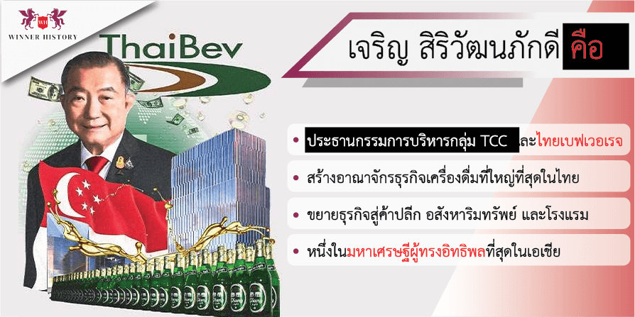 - สร้างอาณาจักรธุรกิจเครื่องดื่มที่ใหญ่ที่สุดในประเทศไทยผ่านไทยเบฟเวอเรจ