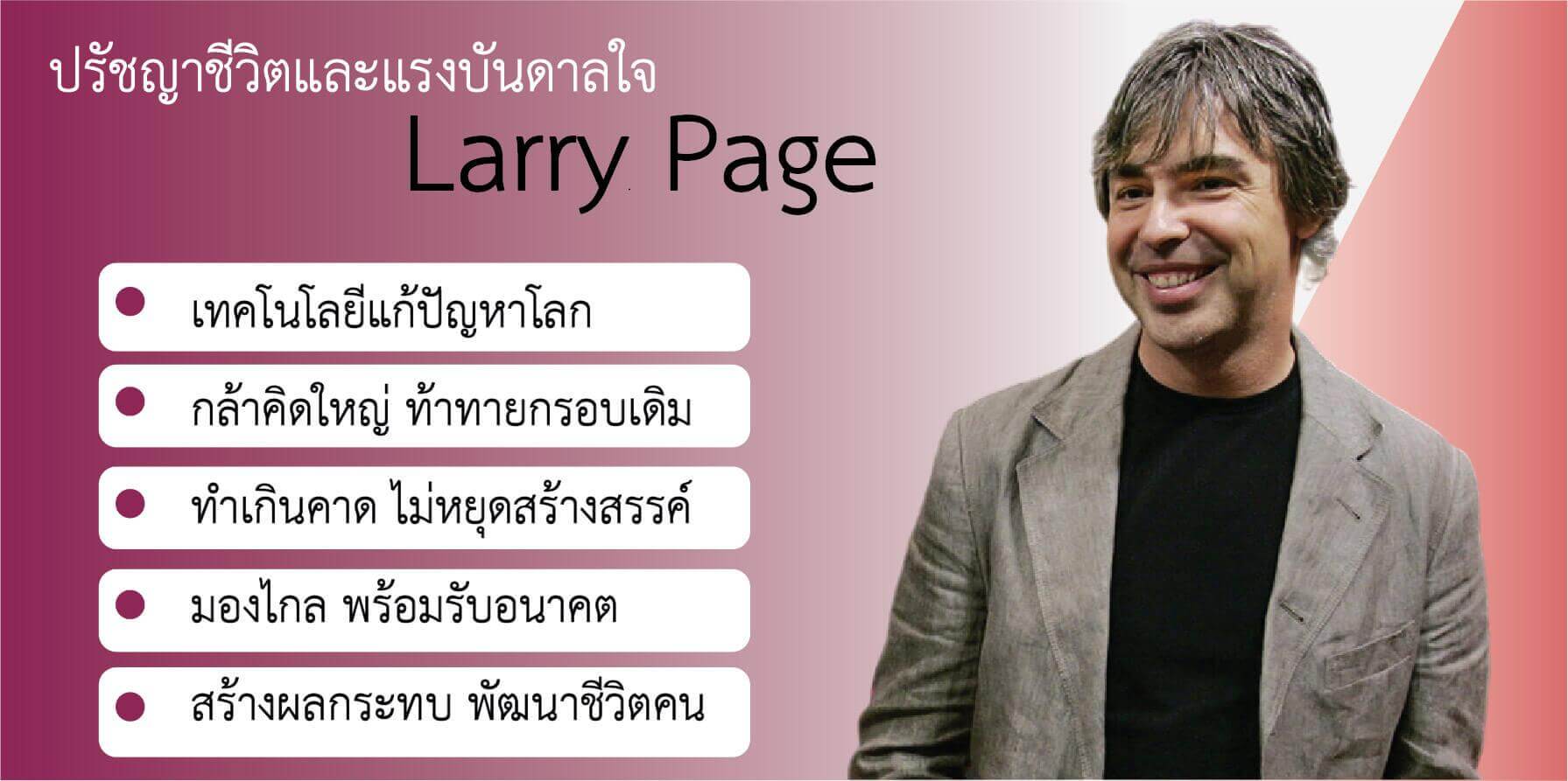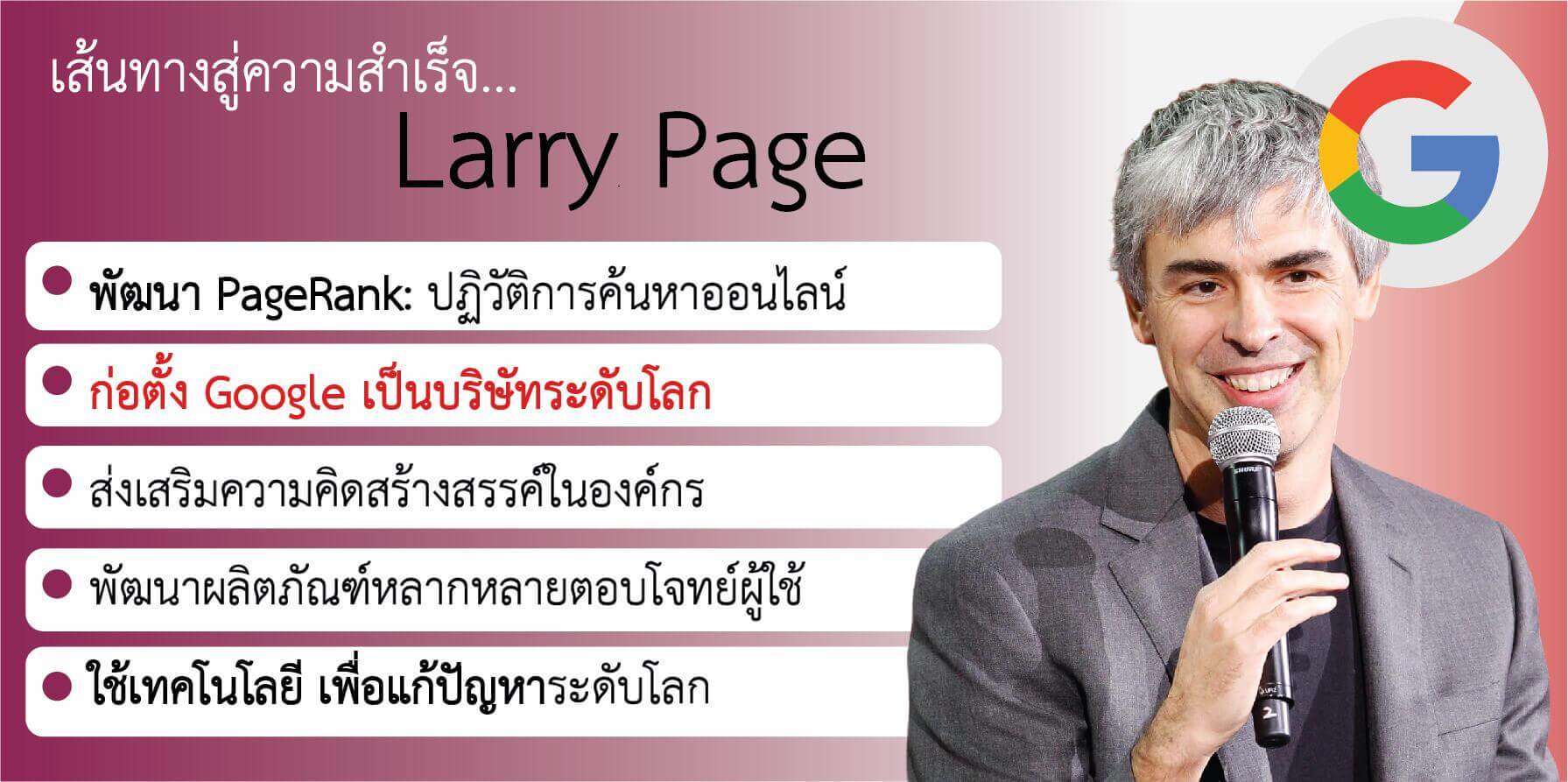 ซึ่งถ้ามองภาพรวมจรากประวัติของ Page แสดงให้เห็นถึงความสำคัญของการมีพื้นฐานที่ดี การศึกษาที่เข้มแข็ง และการพบเจอกับผู้ร่วมงานที่มีวิสัยทัศน์เดียวกัน เส้นทางชีวิตของเขาเป็นแรงบันดาลใจให้กับผู้ประกอบการรุ่นใหม่ที่ต้องการสร้างความเปลี่ยนแปลงให้กับโลก
