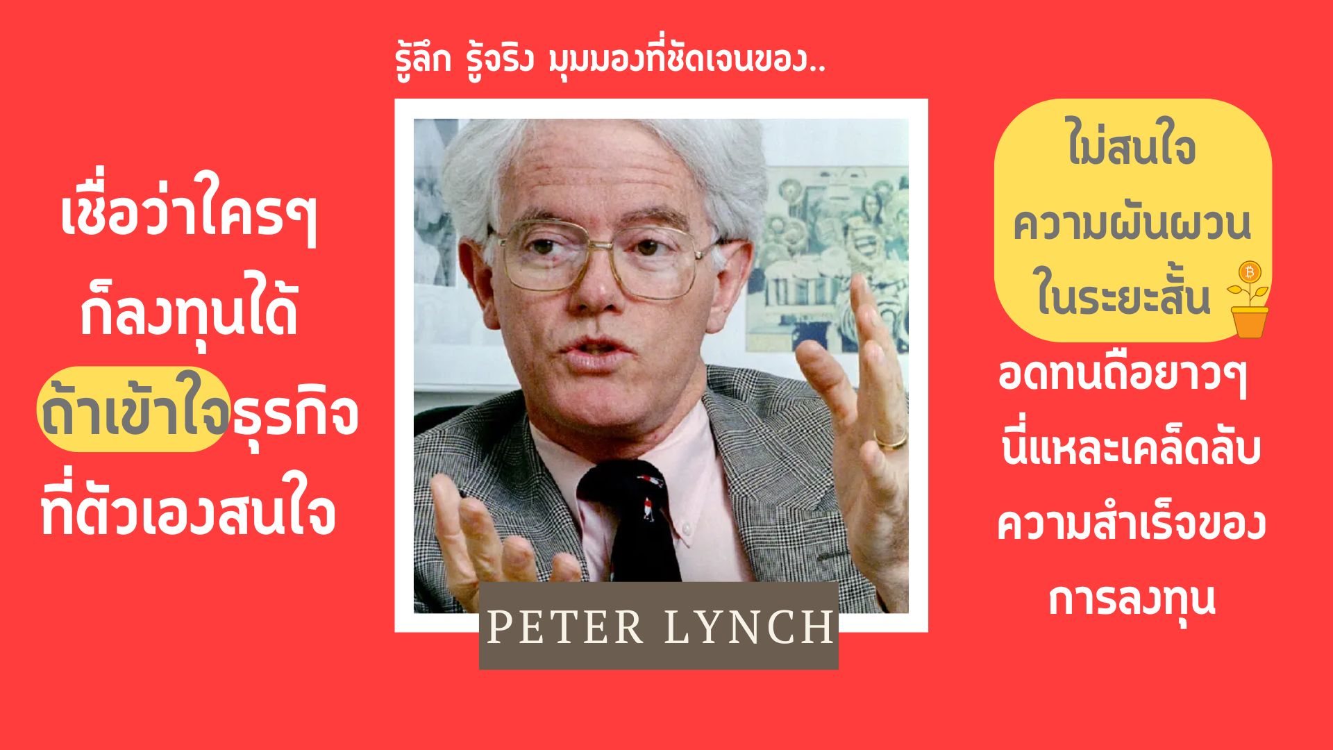 ถ้าไม่มี Peter Lynch เราอาจจะยังเห็นโลกการลงทุนเป็นเรื่องยากและมีแต่คนใหญ่โตที่เข้าใจ แต่ Lynch ทำให้มันกลายเป็นเรื่องที่ทุกคนสามารถเข้าถึงและทำได้