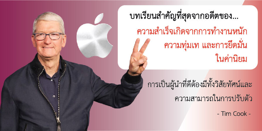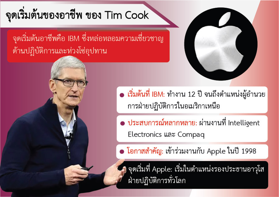 • การทำงานที่ Apple เปิดโอกาสให้ Cook ได้พัฒนาความสามารถและก้าวขึ้นสู่ตำแหน่งสูงสุด