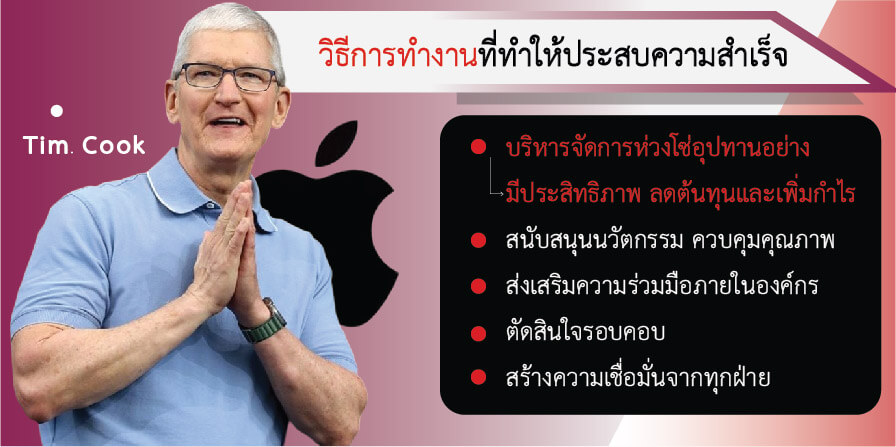 • การเป็น CEO ทำให้ Cook มีโอกาสนำพา Apple ไปสู่ความสำเร็จและสร้างผลกระทบต่อโลก